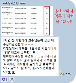 우리 아이 영어, 이젠 제가 가르쳐요! 중2 딸 영어 시험 제가 직접 봐줘요. 이번 학기에 바로 100점 맞아 오더라구요. 아이도 너무 이해가 잘 된다고 좋아합니다. 모두 리얼딜 덕분이에요🙏