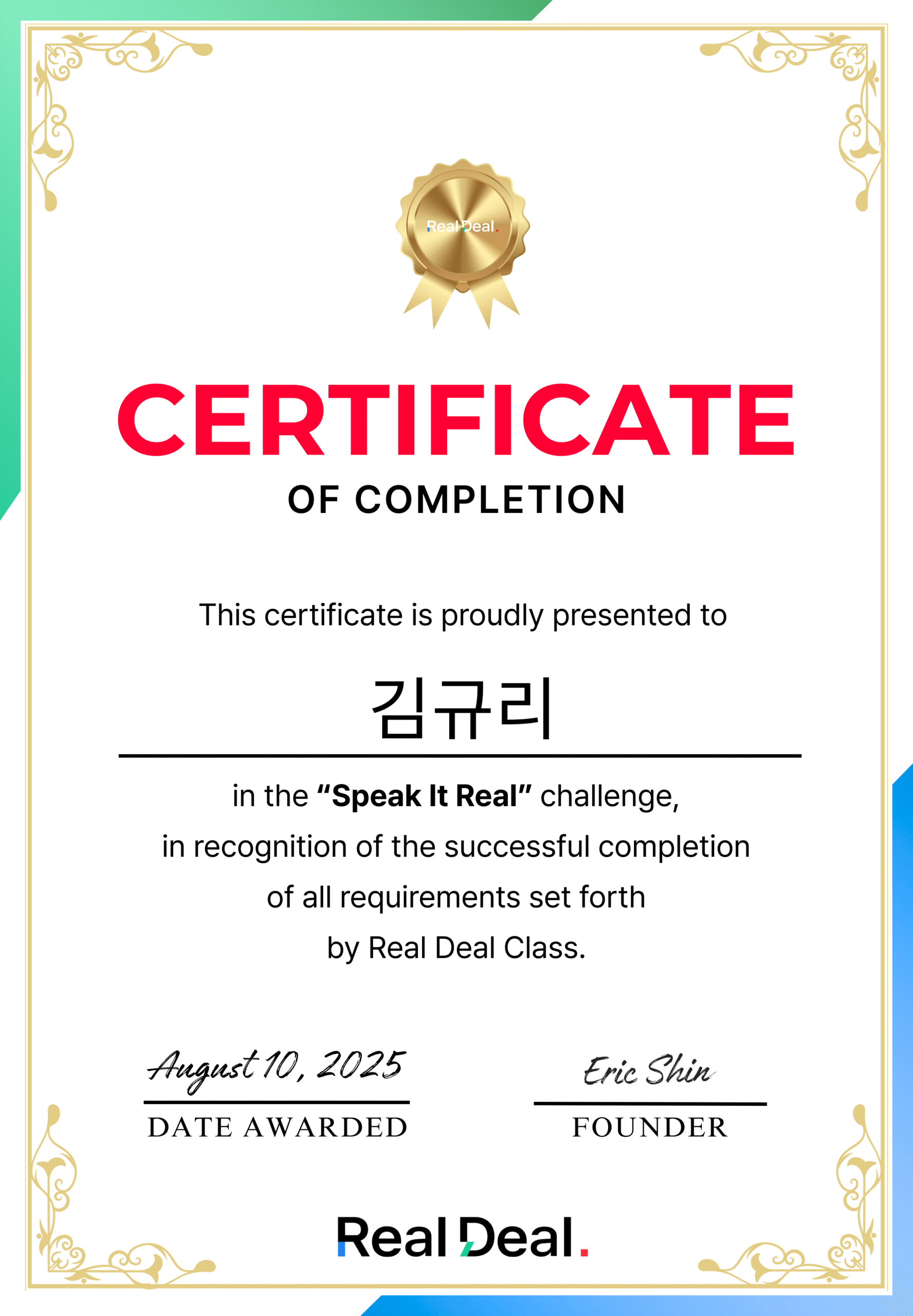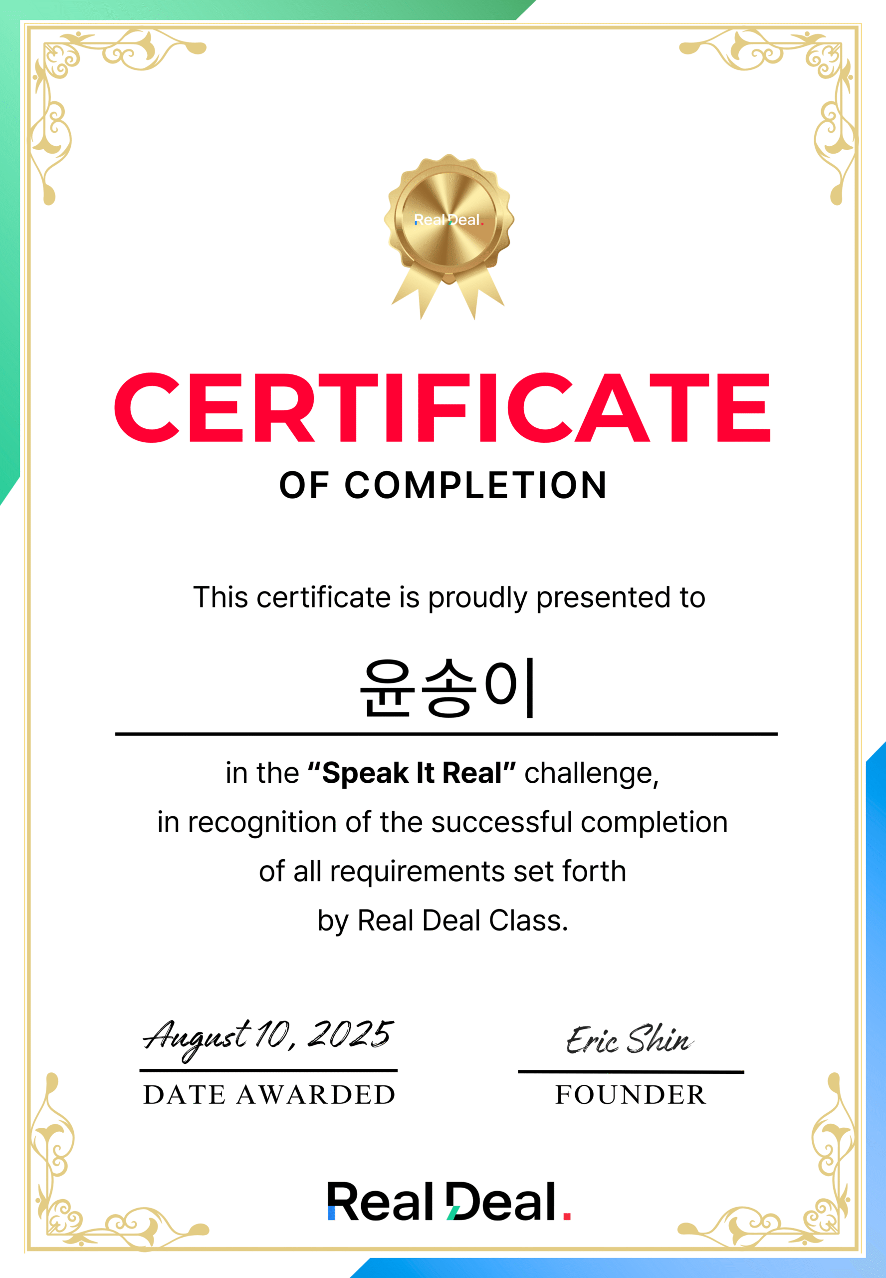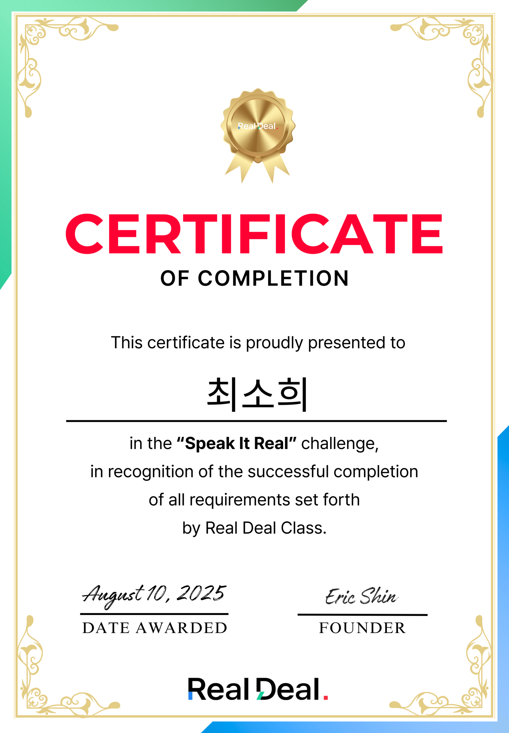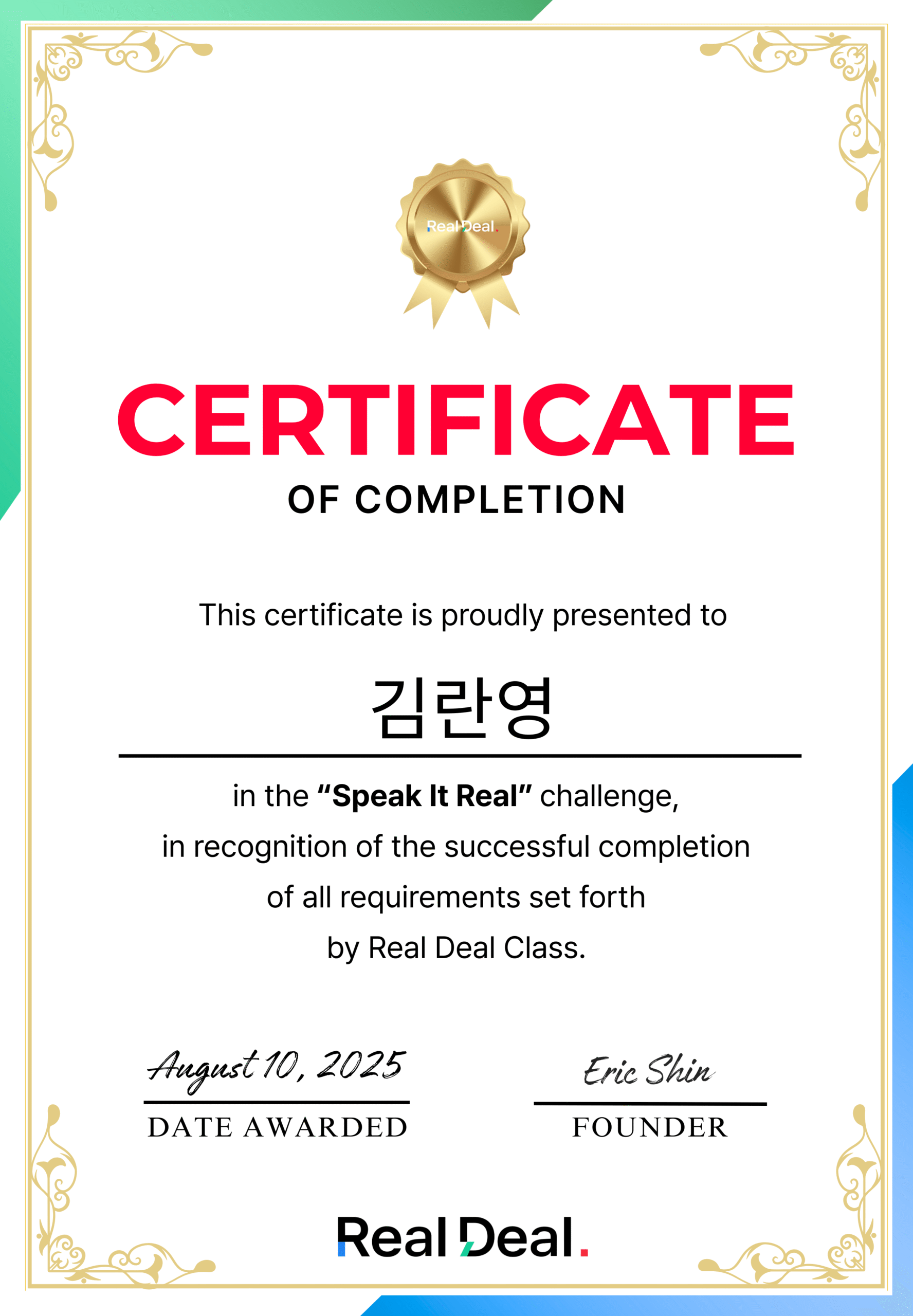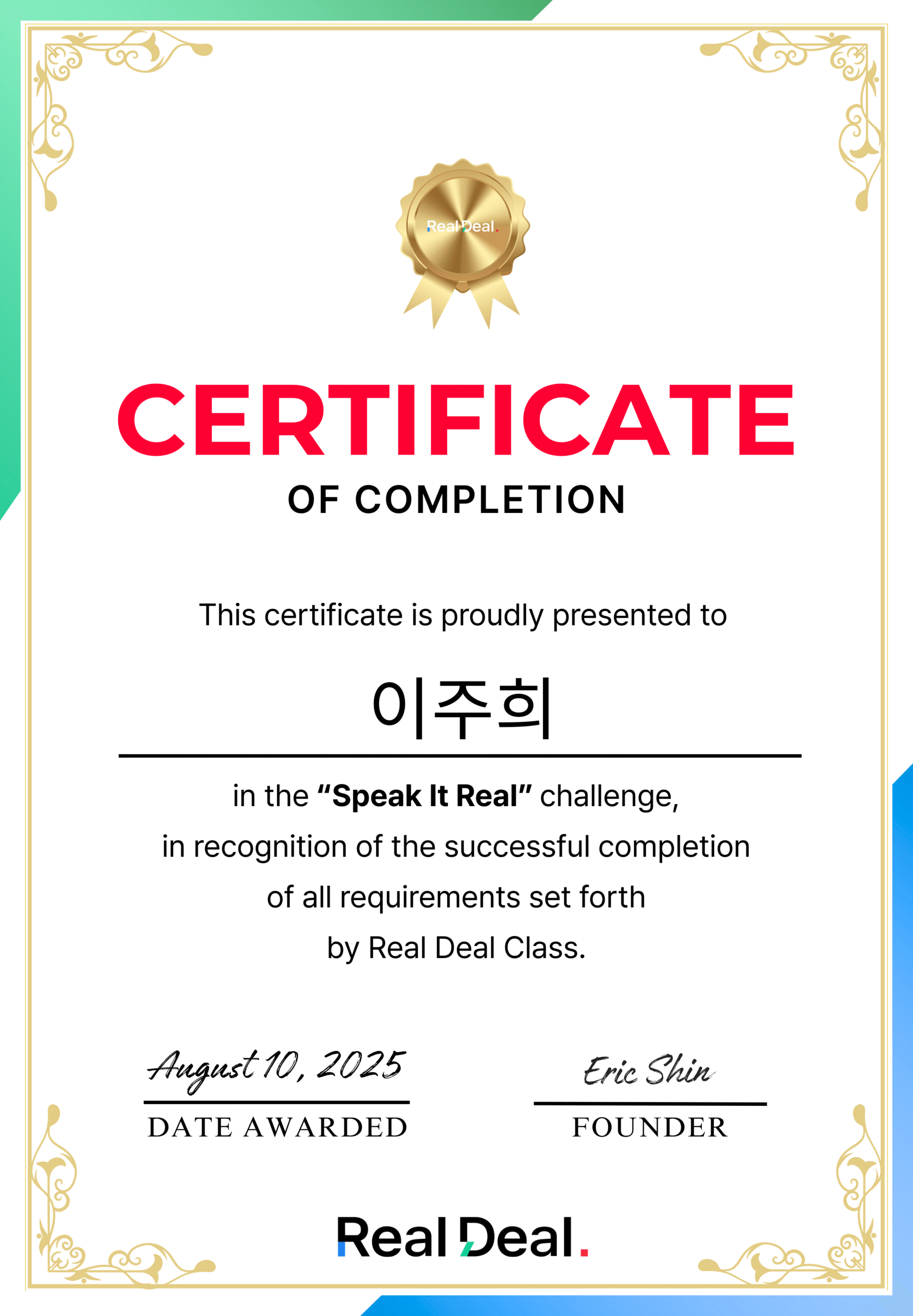 진짜 미치도록 효율적이고 체계적입니다. 바쁜 일정에도 실력이 계속 늘어요. 덕분에 처음으로 영어 회의도 발표하게 됐어요. 모두 리얼딜 덕분입니다🥹